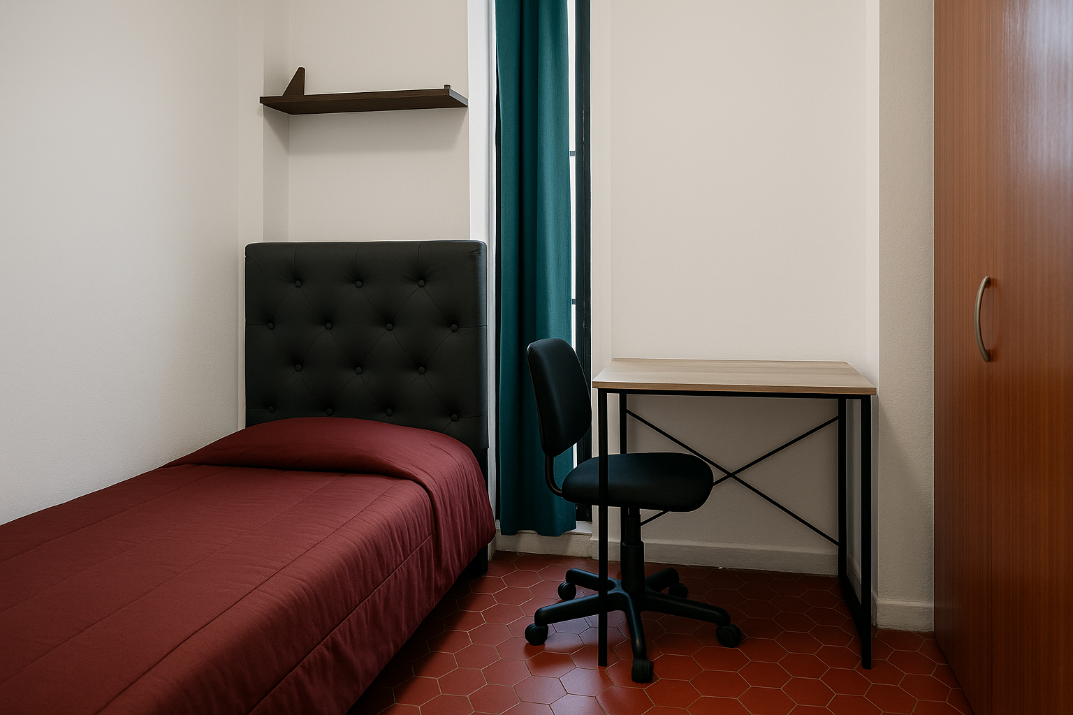 La habitación individual está pensada para estudiantes que valoran la tranquilidad, la privacidad y un entorno personal para estudiar y descansar. Es un espacio completamente equipado y funcional, ideal para concentrarte en tus objetivos académicos mientras disfrutás de un ambiente cómodo y seguro.