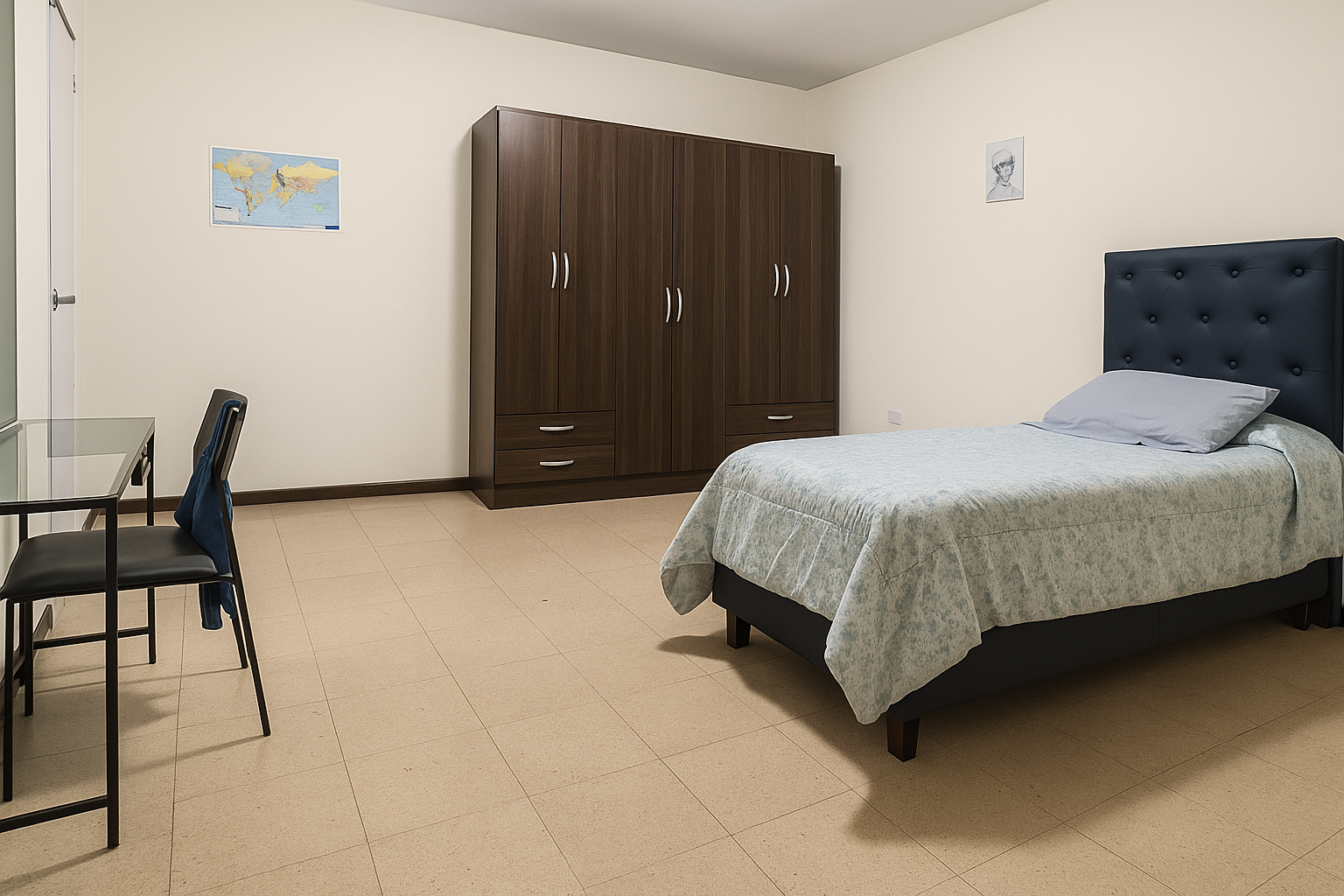 La habitación está pensada para brindar un entorno equilibrado, donde cada estudiante pueda contar con su propio espacio dentro de un ambiente compartido, cómodo y tranquilo.