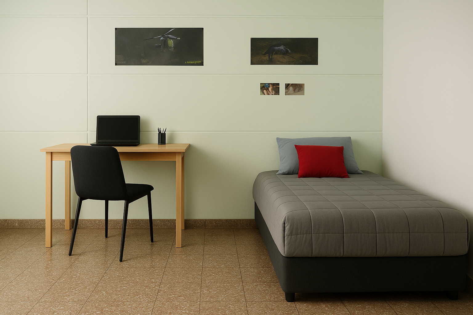 La habitación está pensada para brindar un entorno equilibrado, donde cada estudiante pueda contar con su propio espacio dentro de un ambiente compartido, cómodo y tranquilo.